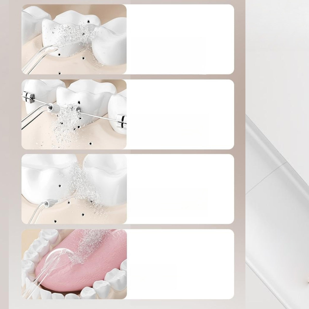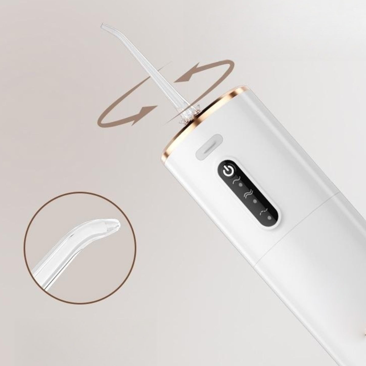 • Interchangeable nozzle tips for gum care, orthodontic cleaning, and tongue refreshing